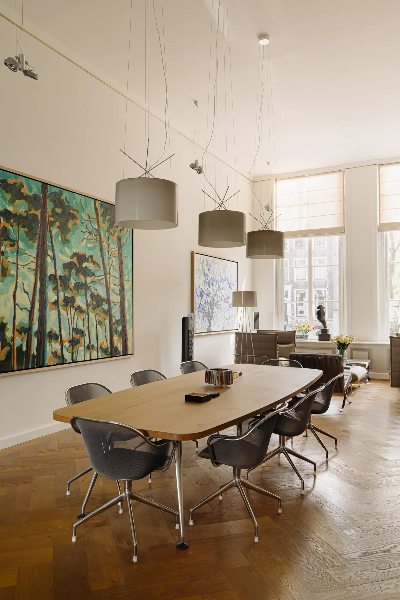 De oorspronkelijke sierlijsten en schoorsteenmantels werden door ambachtslieden gerestaureerd tot in het kleinste detail. Nieuwe elementen zijn zorgvuldig afgestemd op het historische karakter, waardoor oud en nieuw naadloos samenvloeien.